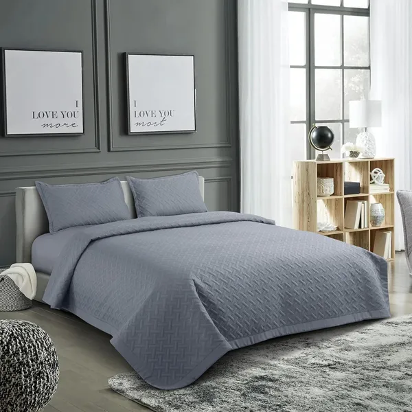 All Weather 3 Pcs 100% Cotton Ultrasonic 280 Tc Solid King Size Quilted Bed..More