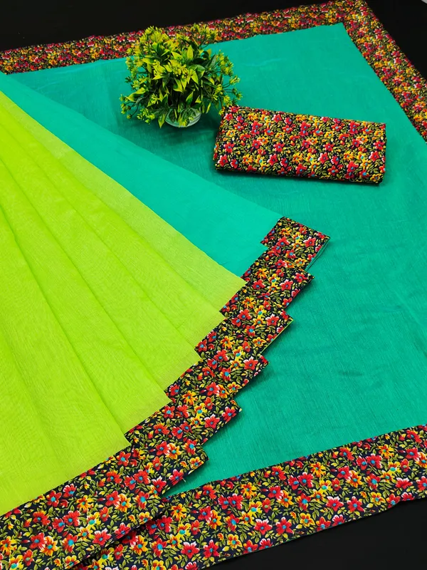 DRIyugOMIZ Printed Bollywood Chanderi Saree (Light Blue)